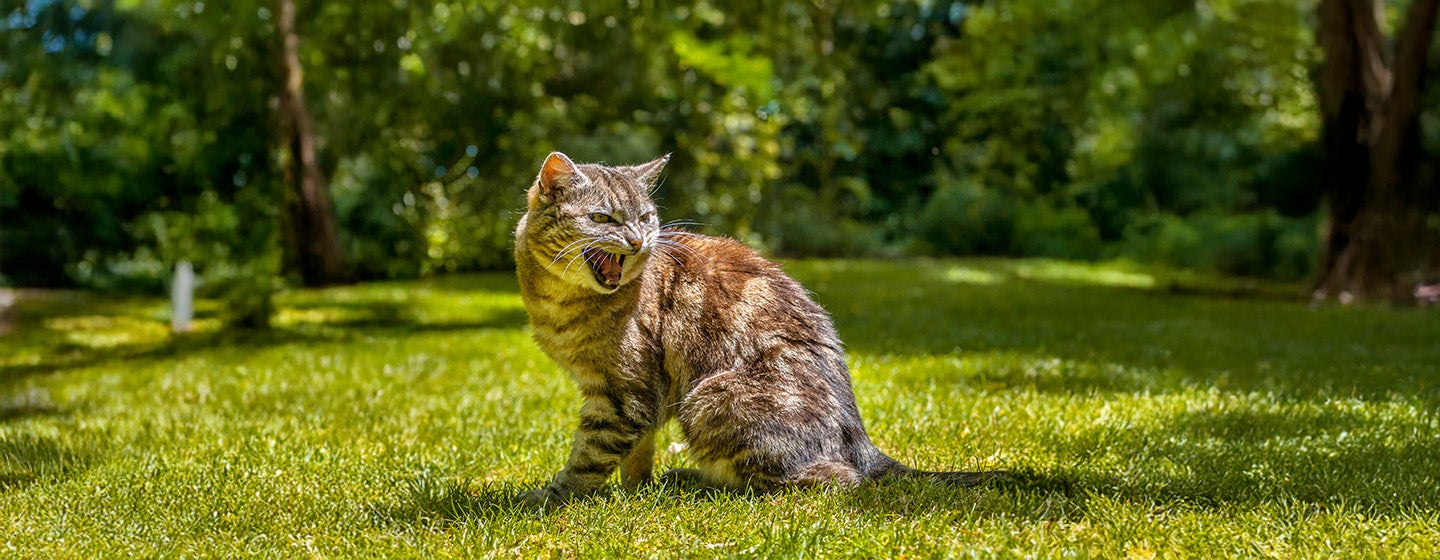 Cats most often hiss at other animals. They may be involved in territorial disputes or having another kind of cat argument. If your cat is hissing and there is no indication as to why they are being provoked, it may be a sign that they are feeling unwell or are in pain. If unprovoked hissing continues, you should seek a vet’s advice as it may be a sign that your pet is in pain with an undiagnosed condition.